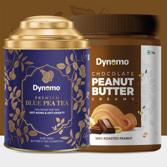 Combo of Dynemo Chocolate Crunchy Peanut Butter 1KG + Dynemo Blue Pea Tea 50g: A...