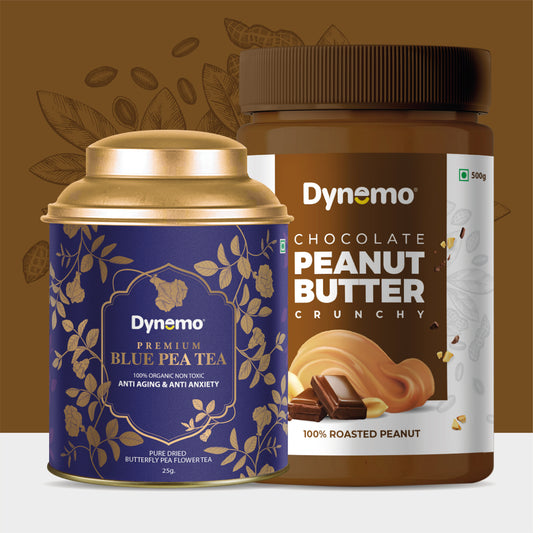 Combo of Dynemo Chocolate Crunchy Peanut Butter 500g + Dynemo Blue Pea Tea 25g: A...