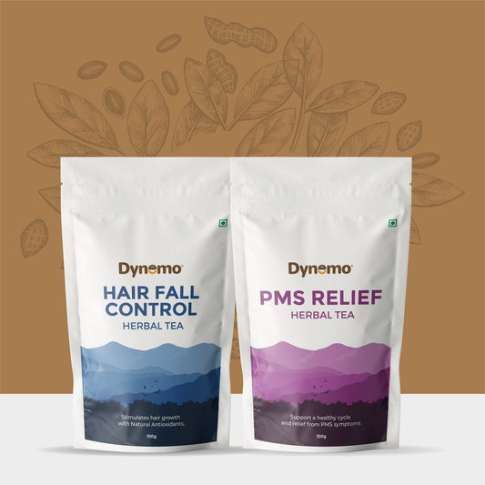 Dynemo Hair fall Control Herbal Tea 100g + Dynemo PMS Relief Herbal Tea 100g