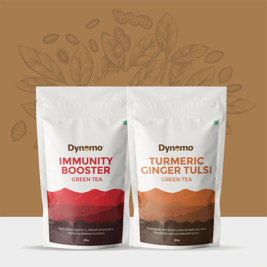 Dynemo Turmeric Ginger Tulsi Green Tea (100g): Green Tea Base: Antioxidant-rich, supports metabolism. Turmeric: Anti-inflammatory...