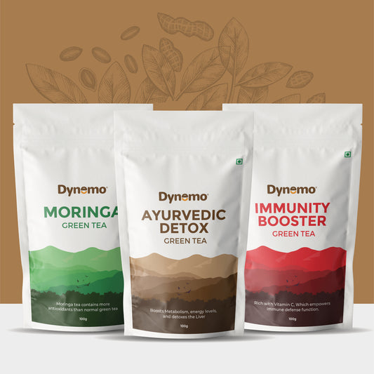 Dynemo Ayurvedic Detox Green Tea 100g + Dynemo Moringa Green Tea 100g + Dynemo Immunity Booster green Tea 100g