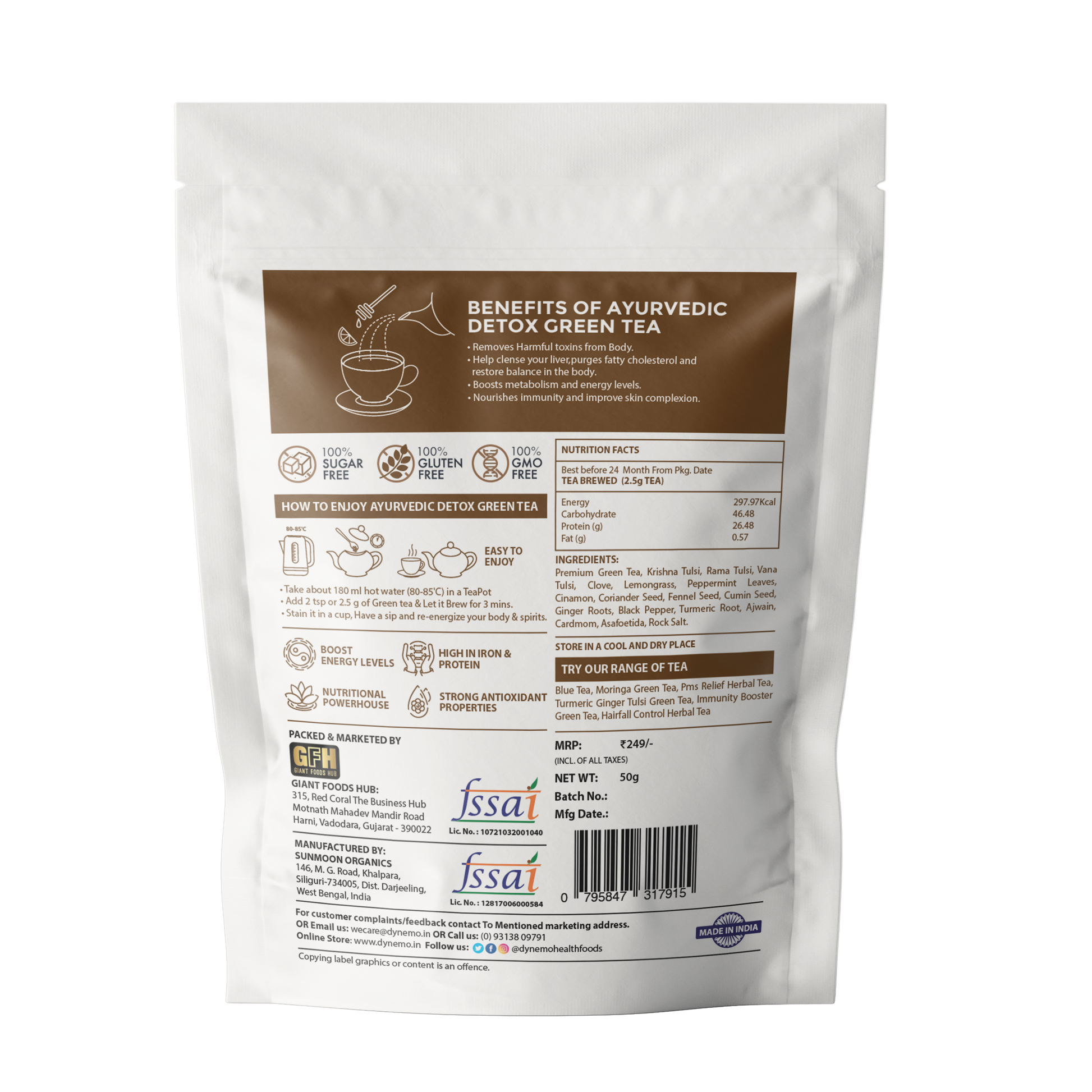 Elevate your wellness routine with Dynemo Ayurvedic Detox Green Tea, a blend that not only tantalizes your taste buds but also nurtures your body with the goodness of Ayurvedic herbs and green tea..