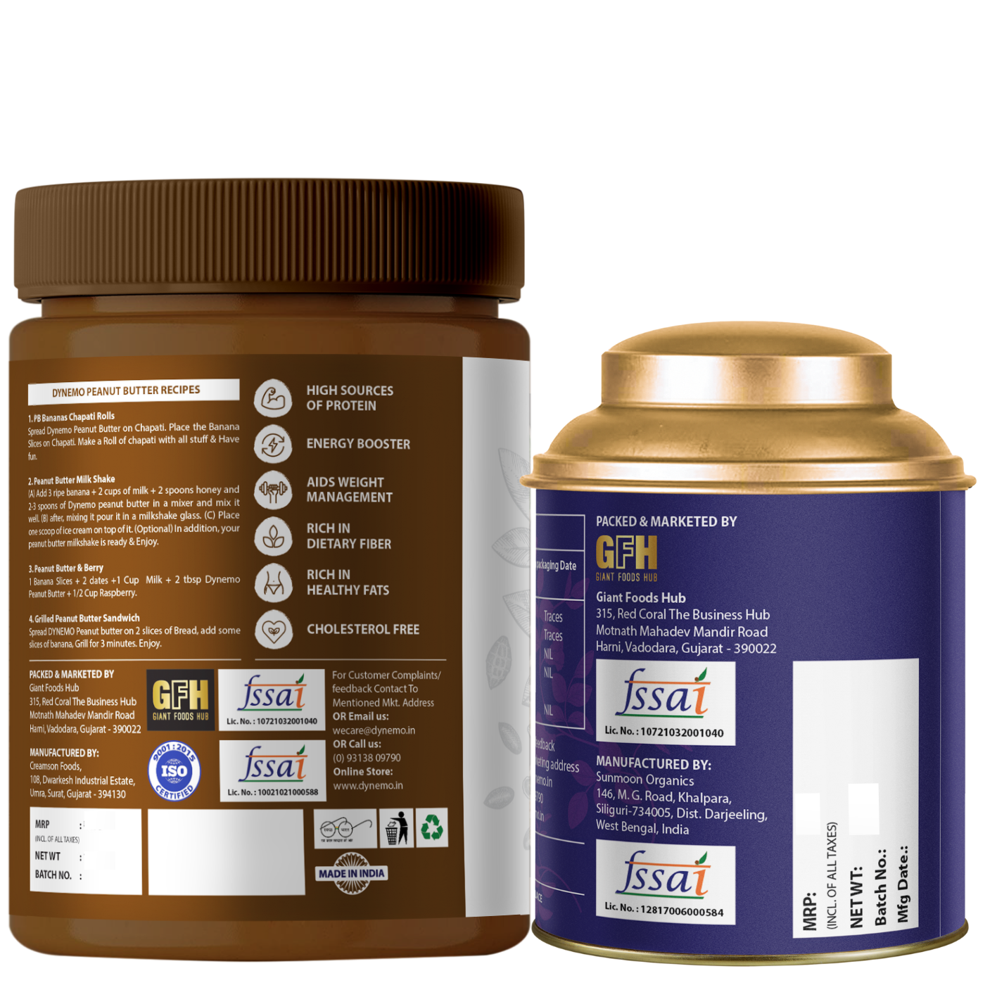 Combo of Dynemo Chocolate Crunchy Peanut Butter 1KG + Dynemo Blue Pea Tea 50g: A Perfect Blend of Crunch and Calm