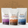 Dynemo Hair fall Control Herbal Tea 100 g + Dynemo PMS Relief Herbal Tea 100g + Dynemo Turmeric Ginger Tulsi Green Tea 100g